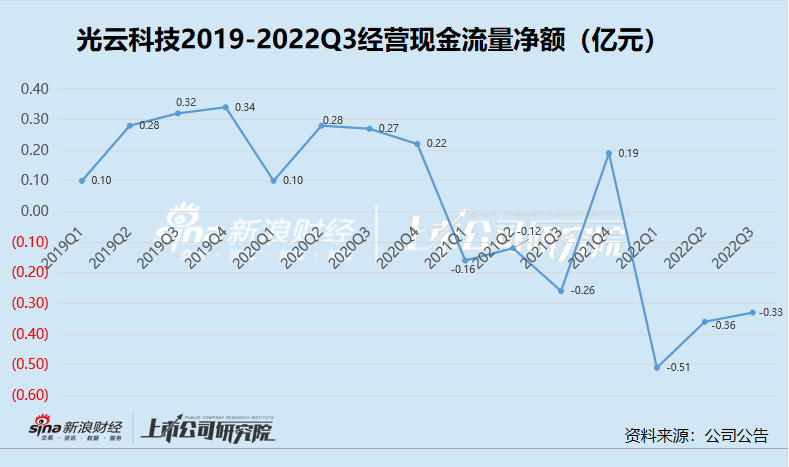 2022年,光云科技的经营性现金流情况再度恶化,仅前三季度便净流出1.2亿元。