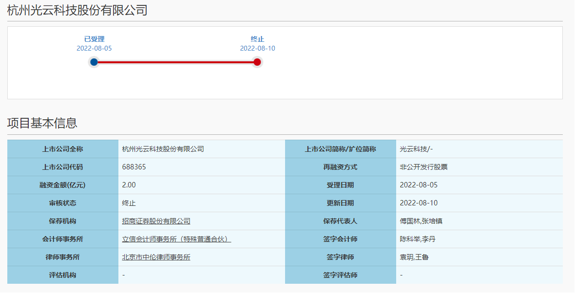 只不过,彼时仅仅5天之后,光云科技便发布公告申请撤回此次定向增发相关申请文件。