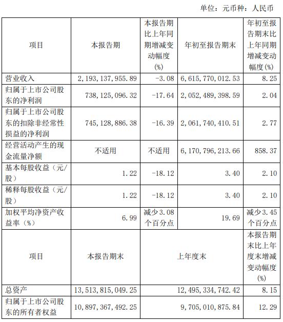 据了解,2022年第三季度,片仔癀实现营业收入约21.93亿元,同比下降3.08%;净利润约7.38亿元,降幅达到17.63%;扣非净利润约7.45亿元,降幅为16.39%。这是片仔癀自2016年第四季度以来首次单季度盈利下降。